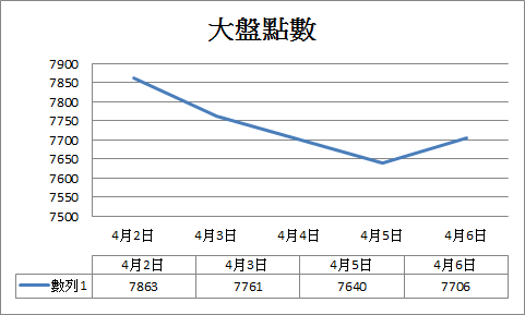 扣掉4/4放假一天,本週只有開市四天,呈現一路下跌的趨勢。